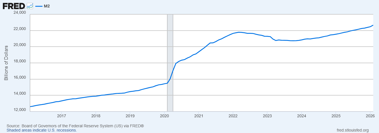 Get ready for the money supply to go higher as Treasury issues debt to fund the Iran War and as the Fed has to step into the breach to buy crap U.S. paper.