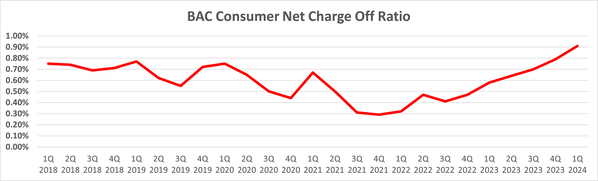 Bank of America's Consumer Net Charge Offs Are At Their Highest Level Since 2013