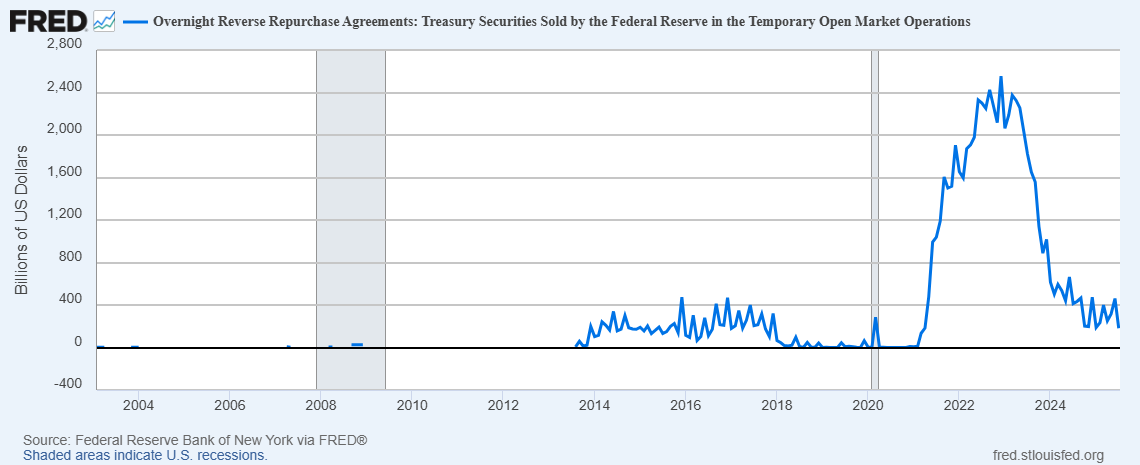 The Fed took the week off and next meets on July 29th and 30th. Powell & Company never did its job in terms of truly tightening the money supply after it expanded M1 and M2 at a record pace in the period from April 2020-May 2022. The Fed is now prepared to lower rates (QT has essentially stopped), at a time when the fiscal side of the house continues to operate at record deficit levels. This can only mean price inflation for goods and services will continue. The second chart below shows that the Federal Reserve system has grown M1 at a healthy pace over the past year after it took away the banking systems’ BTFP crutch in March 2024. The Fed has had some form of QE running in the background since it started its balance sheet runoff. Heck, even the overnight reverse repo market is still humming along (3rd chart). The fiscal and monetary sides are creating such a frothy environment that if in fact the 10-year Treasury yield breaks away, no amount of yield curve control will contain it. U.S. Government paper simply is not the safest global asset regardless of U.S. propaganda. I prefer gold and any mineral with utility to U.S. debt and fiat currency. Imagine if the U.S. was a NASDAQ-listed company that consistently grew debt faster than revenues and that has had negative earnings for the past 25 years. Oh, don’t worry, the company can issue new debt to cover deficits and pay off the old debt. What would you want in return? More than 4.5%? That’s exactly why I believe the 10-Year Treasury Yield will move directionally higher over the next 1, 3, 5, 7, 10, 20-year period - pick your poison.