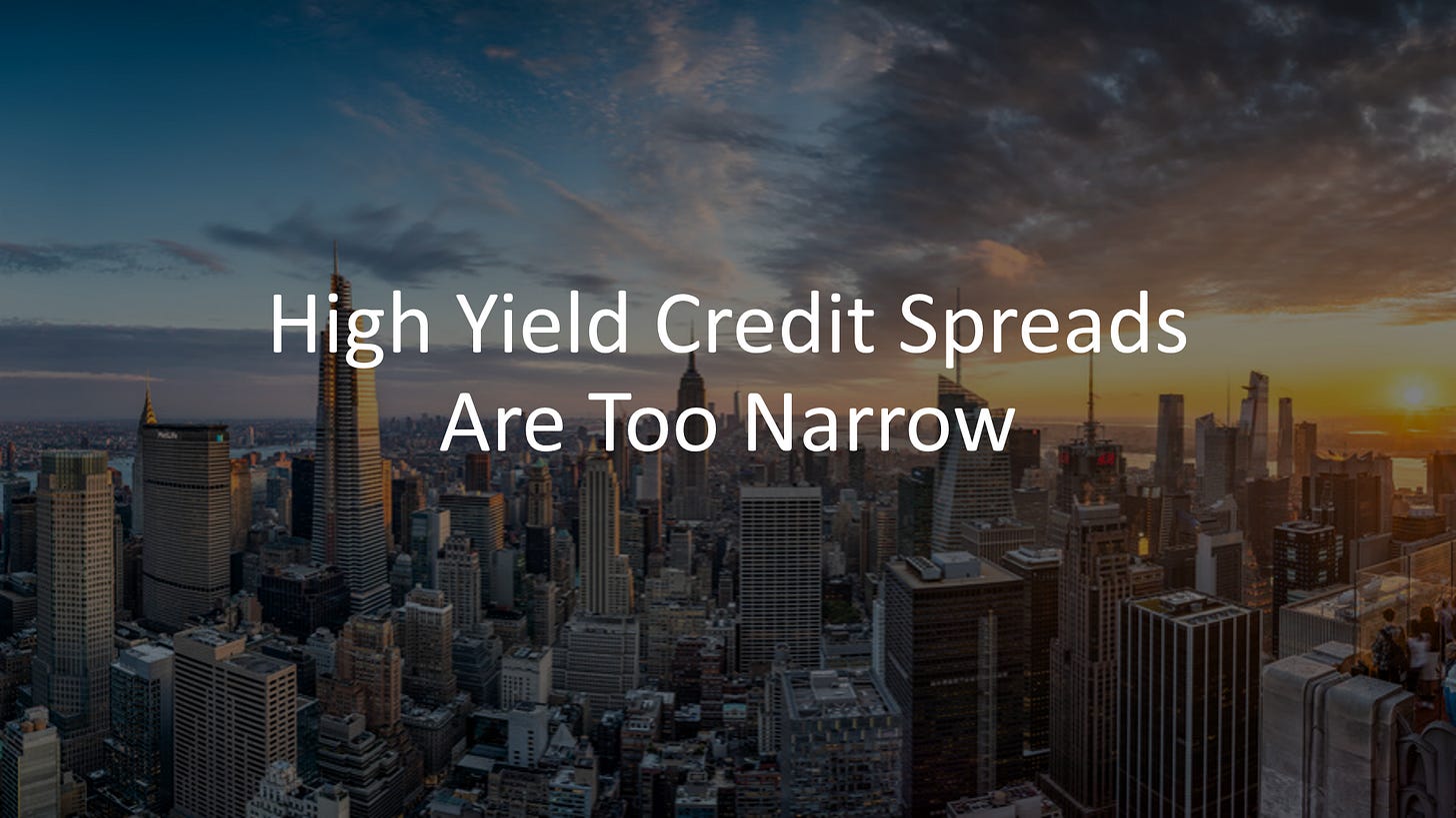 High Yield Credit Spreads Are Too Narrow