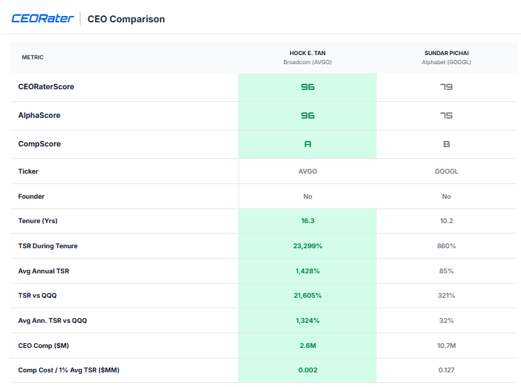 Hock Tan (AVGO CEO) vs. Sundar Pichai (GOOGL CEO)