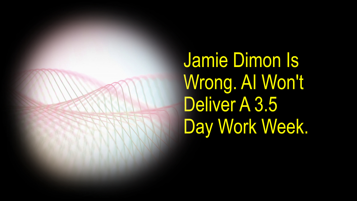 Jamie Dimon Is Wrong. AI Won’t Deliver A 3.5 Day Work Week.