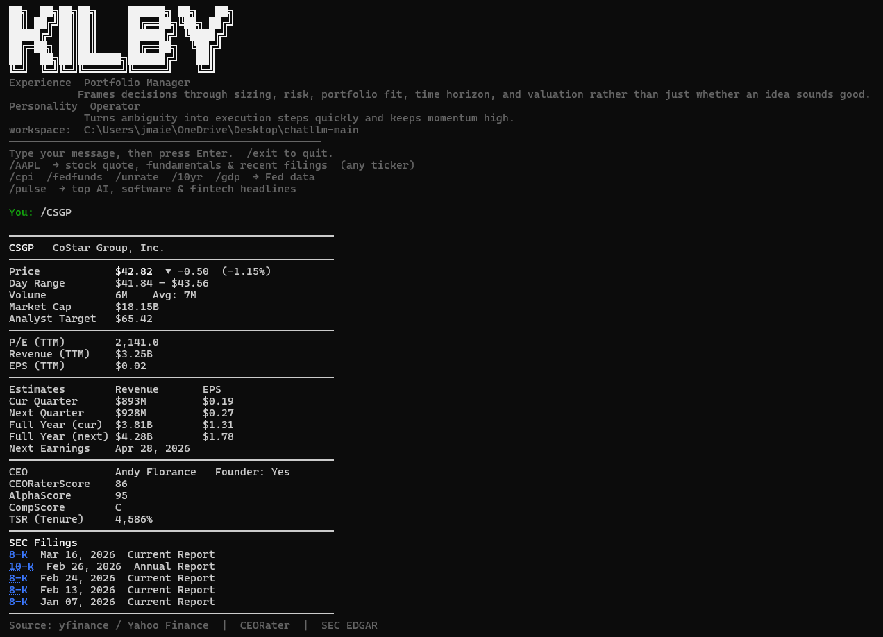 The pic above is our Kilby AI agent in terminal view with the “Portfolio Manager” lens applied.