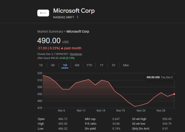 Microsoft (MSFT) hitched its wagon to OpenAI. MSFT shares took off as a result over the past several years. However, MSFT has recently seen its partner - OpenAI - bloodied by Google (GOOGL). Therefore, I am puzzled as to why MSFT shares have started to recover. MSFT shares should be getting hammered.