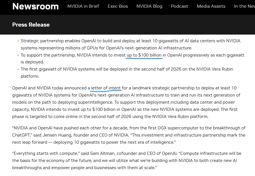 - The non-binding Letter of Intent (“LOI”), says that NVIDIA (NVDA) may invest “up to $100 billion” in OpenAI and that payment…