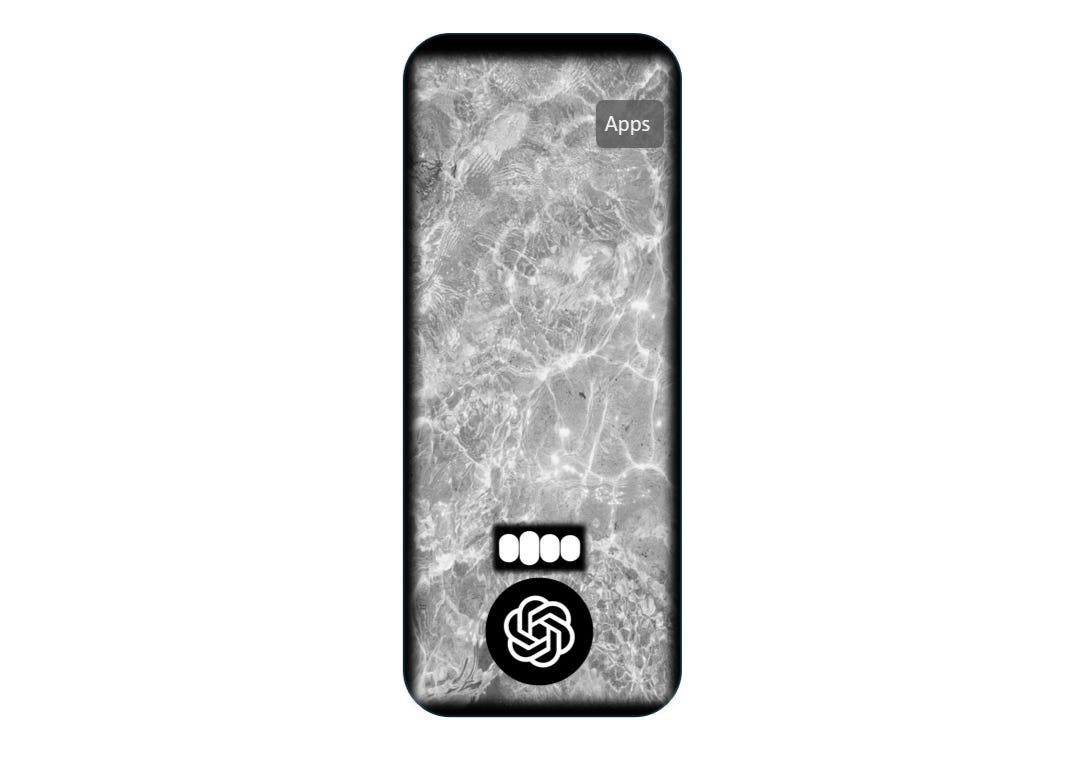 The ChatGPT voice & text icons are front and center. Third-party apps default to a visually subtle “apps” folder to eliminate clutter and mitigate the risk of the OpenAI icons losing user attention to “noise”.