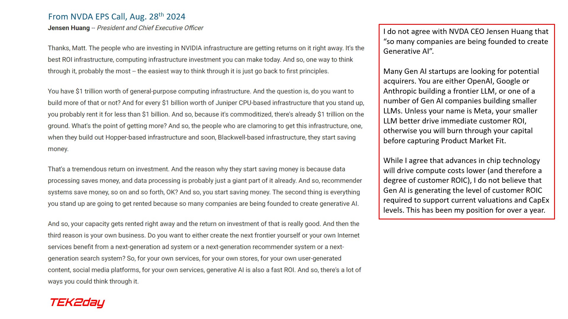 Our Quick Take On NVDA's Call: Customer ROIC Matters and Is Lacking RE: Gen AI