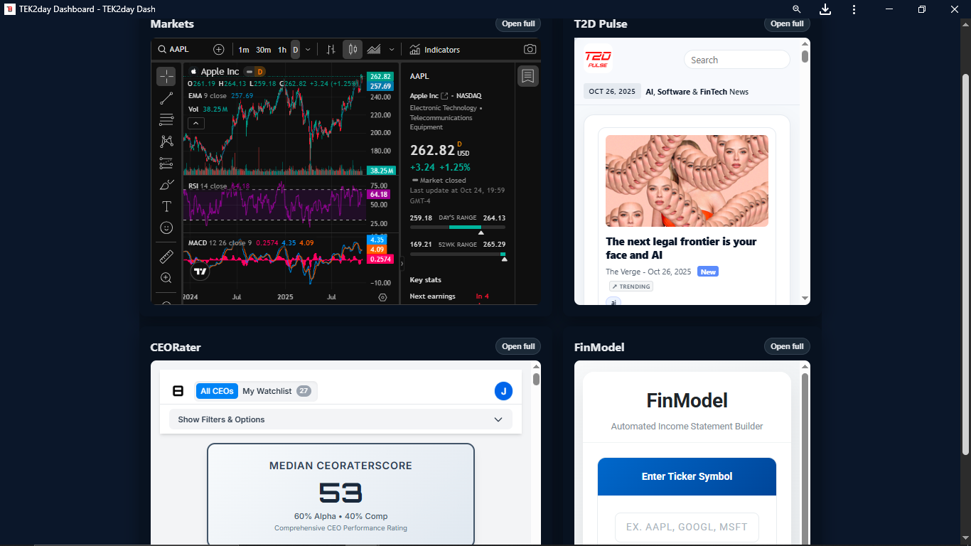 T2D Dashboard. We just added FinModel to the Dash over the weekend: HERE