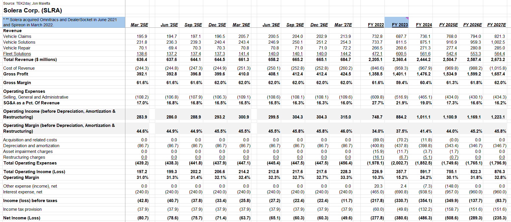- Premium TEK2day subscribers may view the Excel version below the paywall. - We modeled revenues and related expenses through fiscal year 2027. We captured revenue and adjusted EBITDA by reportable segment. We also modeled cash flow over the same period.