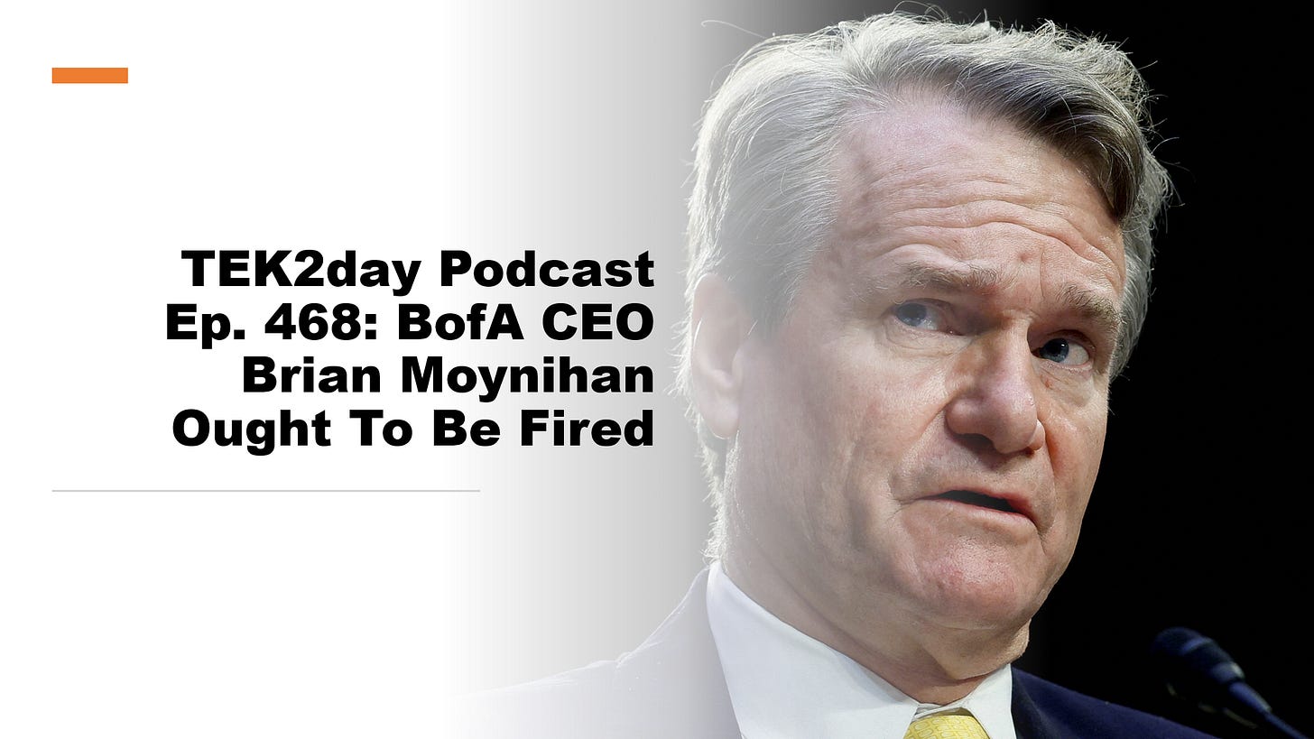 TEK2day Podcast Ep. 468: BofA CEO Brian Moynihan Ought To Be Fired