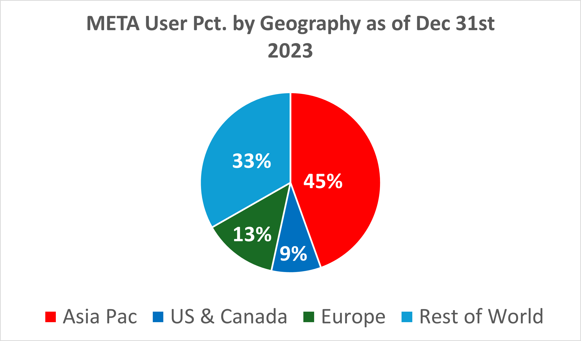 - How should one value META given that 45% of META’s users are based in China? The CCP could turn off META access to mainland China overnight if it wished.